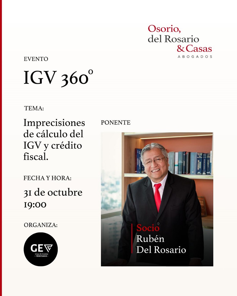Nuestro socio Rubén Del Rosario, participará como ponente en el evento «IGV 360°», organizado por GET – Grupo de Estudios…